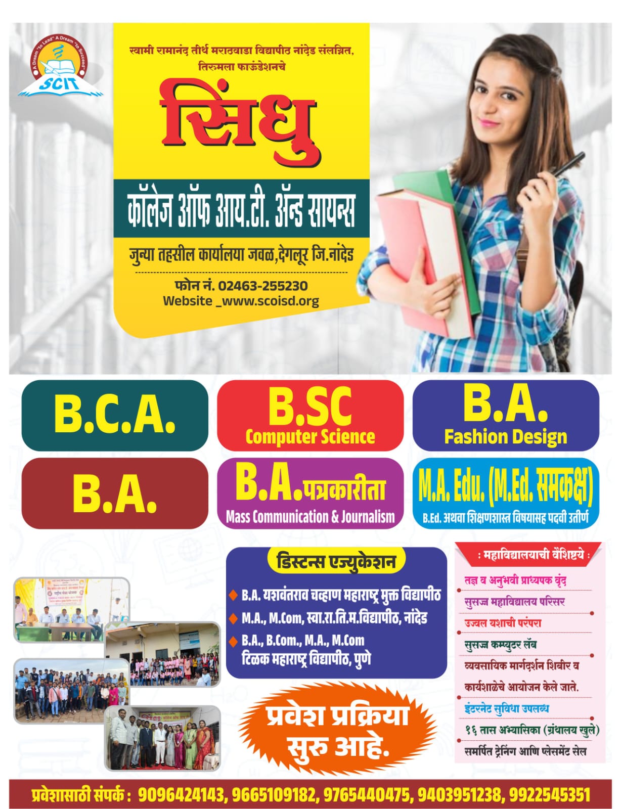 Tirumala Foundations Sindhu College of IT & Science Degloor was established in 2008, The college is located in Degloor which is border area of Maharashtra, Telangana & karnatka state having students from economically and educationally weaker sections of the society.